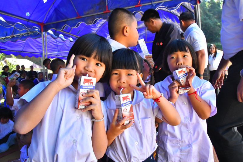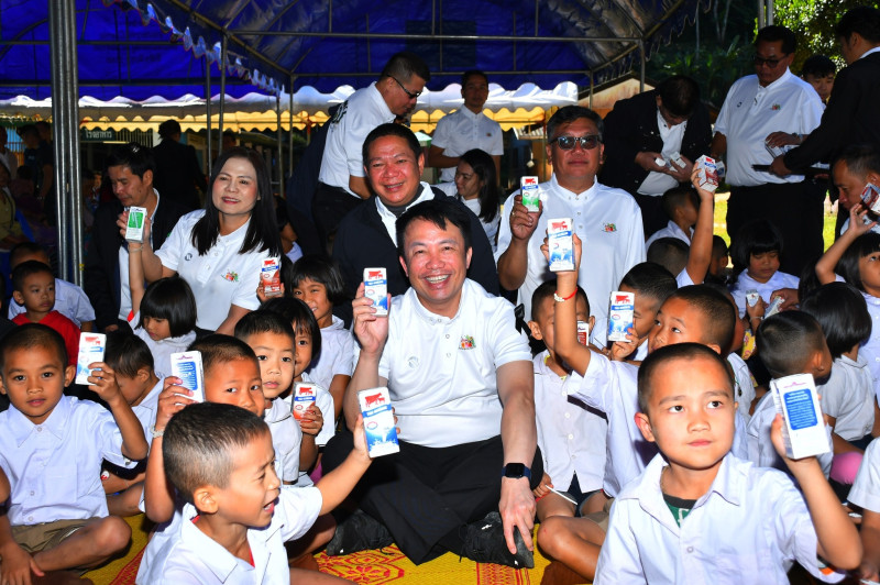 จากนั้น อธิบดีกรมส่งเสริมสหกรณ์ ร่วมเป็นเกียรติส่งมอบเงินบริจาคจากผู้ใหญ่ใจดีทั้ง 3 คณะ ได้แก่ 1.นายพิษณุ คล้ายเจตน์ดี เพื่อน และ (เกลียวเชือก) จำนวน 16,000 บาท 2.ภาคีเครือข่ายสหกรณ์ภาคการเกษตรจังหวัดร้อยเอ็ด จำนวน 15,800 บาท และ 3.สหกรณ์การเกษตรเกษตรวิสัย จำกัด จังหวัดร้อยเอ็ด จำนวน 30,000 บาท ให้แก่คณะครูโรงเรียนตำรวจตระเวนชายแดน ชมรมอนุรักษ์พุทธศิลปะไทยอนุสรณ์ 2 (บ้านปุงยาม) สำหรับใช้ในการพัฒนาสภาพแวดล้อมการเรียนรู้ จัดซื้อวัสดุอุปกรณ์การศึกษา และสนับสนุนกิจกรรมต่าง ๆ ที่ช่วยเสริมทักษะและพัฒนาคุณภาพชีวิตของนักเรียนในพื้นที่ห่างไกล จากนั้น อธิบดีได้นำคณะผู้บริหารกรมร่วมกิจกรรมส่งเสริมการดื่มนม โดยมอบนมกล่องให้เด็กนักเรียนเพื่อเสริมสร้างสุขภาพที่แข็งแรง พร้อมมอบกระปุกออมสินแทนสัญลักษณ์ของการส่งเสริมวินัยการออมโดยให้เด็ก ๆ เรียนรู้การออมเงินตั้งแต่วัยเยาว์ ฝึกวางแผนการใช้จ่าย และเข้าใจคุณค่าของเงิน ซึ่งจะช่วยปลูกฝังนิสัยประหยัด อดออม และความรับผิดชอบทางการเงินในอนาคต