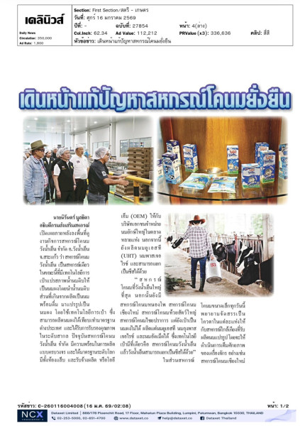 อธิบดีนิรันดร์ มูลธิดา”เดินหน้าเต็มสูบแก้ปัญหาสหกรณ์โคนมสู่ความยั่งยืน เน้นรวมกลุ่มคลัสเตอร์สหกรณ์เล็กเป็นเครือข่ายสหกรณ์ใหญ่ส่งน้ำนมดิบ(ส่วนเกิน)แปรรูปเพิ่มมูลค่า เตรียมหารือปลัดกระทรวงเกษตรและสหกรณ์ จัดทำแปลงใหญ่โคนม ใช้อุปกรณ์แปรรูป สร้างโรงงานอาหารสัตว์ร่วมกัน หวังลดต้นทุนอาหารโค
