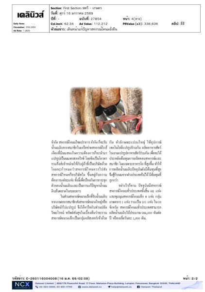 นายนิรันดร์ มูลธิดา อธิบดีกรมส่งเสริมสหกรณ์ เปิดเผยภายหลังลงพื้นที่ดูงานกิจการสหกรณ์โคนมวังน้ำเย็น จำกัด อ.วังน้ำเย็น จ.สระแก้ว ร่วมกับนายวิณะโรจน์ ทรัพย์ส่งสุข ปลัดกระทรวงเกษตรและสหกรณ์ ซึ่งเป็นสหกรณ์โคนมแห่งเดียวในประเทศไทยที่ใช้เทคโนโลยีการเป่า แปรเปลี่ยนจากน้ำนมดิบเป็นนมผง โดยปัจจุบันสหกรณ์โคนมวังน้ำเย็น จำกัด สามารถผลิตนมผงได้ปีละประมาณ 6,500 ตัน จากปริมาณน้ำนมดิบส่วนเกินกว่า 70,000 ตัน ซึ่งเป็นกระบวนการผลิตนมผงที่มีคุณภาพและได้มาตรฐานเทียบเท่ากับต่างประเทศ