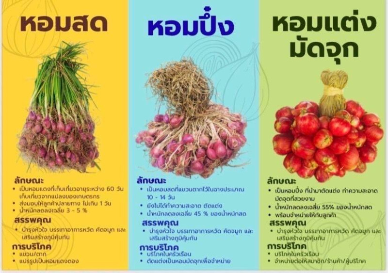 นายถาวรเผยต่อว่า ในส่วนหอมปึ๋งและหอมมัดจุกนั้น จะเริ่มดำเนินการหลังจากเร่งระบายหอมสด ออกจากแหล่งผลิตเรียบร้อยแล้ว โดยเน้นกระจายผ่านเครือข่ายสหกรณ์ในพื้นภาคกลางและภาคใต้เป็นหลัก เนื่องจากหอมทั้งสองประเภทนี้สามารถเก็บไว้ได้นานและการยุบตัวเกิดความเสียหายน้อยกว่าหอมสด โดยหอมมัดจุกราคาในพื้นที่ขณะนี้ราคาอยู่ที่ 25-30 บาท โดยสหกรณ์พยุงราคารับซื้อให้ไม่ต่ำกว่า 30 บาท แล้วขายที่ปลายทางจะรวมค่าขนส่ง อยู่ที่ 40-45 บาท/กิโลกรัม โดยปริมาณหอมมัดจุกตั้งเป้าไว้ที่ 30 ตัน ส่วนหอมปึ๋งตั้งเป้ากระจาย 10-15 ตัน เนื่องจากตลาดปลายทางมีความต้องการน้อยกว่าหอมมัดจุก