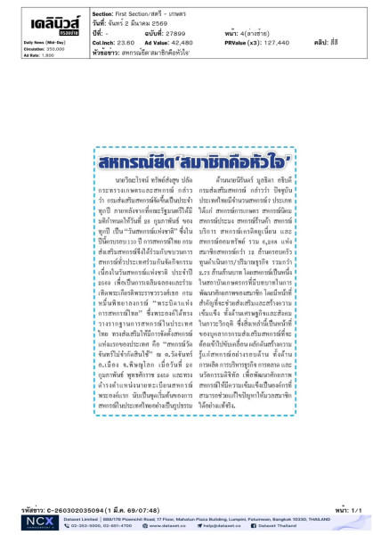2.กิจกรรมเผยแพร่นโยบายและอ่านสารนายกรัฐมนตรี (นายอนุทิน ชาญวีรกูล) เนื่องในวันสหกรณ์แห่งชาติ ประจำปี 2569 เพื่อสร้างขวัญและกำลังใจให้แก่สมาชิกสหกรณ์ และบุคลากรในขบวนการสหกรณ์ ให้เกิดความเข้าใจและสร้างความร่วมมือในการขับเคลื่อนนโยบายการพัฒนาสหกรณ์ไปสู่เป้าหมาย