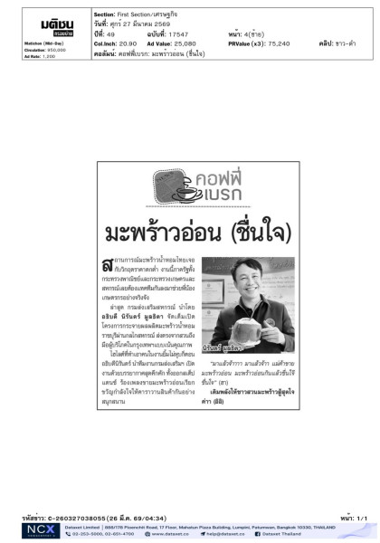 อธิบดีนิรันดร์ Kick Off คาราวานมะพร้าวน้ำหอมราชบุรีสู่คนกรุงเทพ ตั้งเป้าใช้พลังเครือข่ายสหกรณ์ช่วยกระจายผลผลิตอย่างต่อเนื่อง