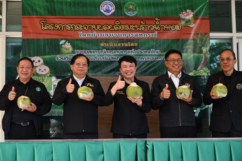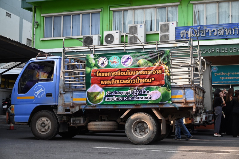 “ในส่วนของงานวันนี้ เราจะ Kick Off ปล่อยคาราวานมะพร้าวน้ำหอมคุณภาพจากสหกรณ์การเกษตร เพื่อการตลาดลูกค้า ธ.ก.ส.ราชบุรี จำกัด จำนวน 3,680 ลูก ไปสู่ผู้บริโภคในพื้นที่กรุงเทพมหานครและปริมณฑล ผ่านเครือข่ายสหกรณ์ ได้แก่ สหกรณ์ออมทรัพย์การบินกรุงเทพ , สหกรณ์ออมทรัพย์มหาวิทยาลัยเกษตรศาสตร์ , ร้านสหกรณ์กรุงเทพฯธนาคารอาคารสงเคราะห์ , สำนักงานตรวจบัญชีสหกรณ์กรุงเทพมหานคร พื้นที่ 2 , สำนักงานส่งเสริมสหกรณ์กรุงเทพมหานครพื้นที่ 2 , สหกรณ์ออมทรัพย์นิด้า , สหกรณ์บริการพนักงานในเครือยูนิลิเวอร์ และสำนักงบประมาณ โดยมีชุมนุมสหกรณ์การเกษตรแห่งประเทศไทย จำกัด ทำหน้าที่เป็นตัวกลาง ในการเชื่อมโยงการซื้อการขายกันระหว่างสหกรณ์ผู้ผลิตและสหกรณ์ผู้บริโภคปลายทาง รวมถึงหน่วยงานต่าง ๆ ทั้งในช่วงที่เกิดภาวะวิกฤติในด้านผลผลิตล้นตลาดราคาตกต่ำและในช่วงเวลาปกติ ซึ่งนอกจากมะพร้าวแล้วยังมีสินค้าอื่นอีกหลายชนิดที่ทางชุมนุมสหกรณ์การเกษตรแห่งประเทศไทย จำกัด ร่วมมือกับเครือข่ายสหกรณ์กระจายผลผลิตและสินค้าให้กับสหกรณ์จากจังหวัดต่าง ๆ อาทิ ผลไม้ตามฤดูกาล มังคุด เงาะ ส้มสายน้ำผึ้ง ข้าวสาร นมพร้อมดื่ม และสินค้าอุปโภคบริโภค ขณะเดียวกันกรมส่งเสริมสหกรณ์พร้อมสนับสนุนเงินทุนดอกเบี้ยต่ำจากกองทุนพัฒนาสหกรณ์ (กพส.) ให้กับสหกรณ์ต่าง ๆ ในการรวบรวมผลผลิต รวมถึงสนับสนุนอุปกรณ์การตลาดที่จำเป็นในการแปรรูปเพิ่มมูลค่า ตลอดจนการพัฒนาเครือข่ายความร่วมมือของขบวนการสหกรณ์ให้เข้มแข็งยิ่งขึ้น” อธิบดีกรมส่งเสริมสหกรณ์ กล่าว
