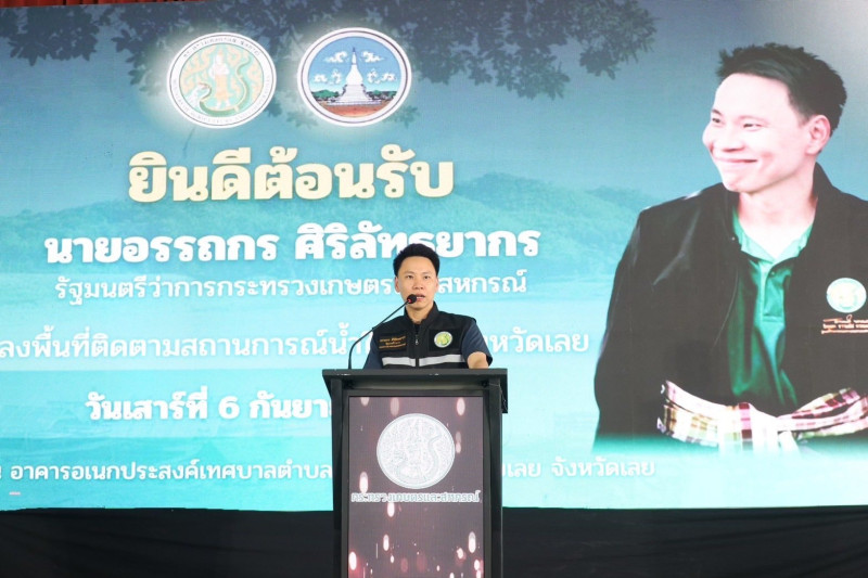 นายอรรถกร ศิริลัทธยากร รัฐมนตรีว่าการกระทรวงเกษตรและสหกรณ์ ลงพื้นที่ตรวจติดตามสถานการณ์น้ำจังหวัดเลย และตรวจความคืบหน้าโครงการชลประทาน