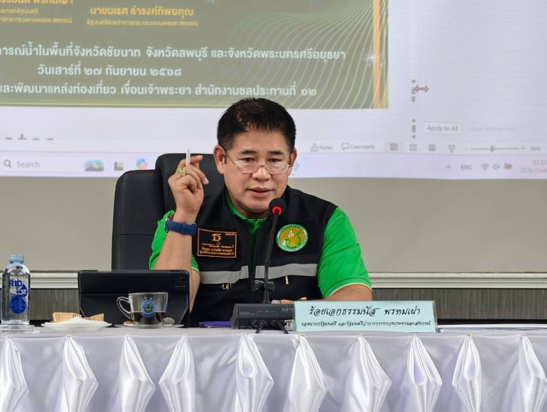 27 กันยายน 2568 ร้อยเอก ธรรมนัส พรหมเผ่า รองนายกรัฐมนตรี และรัฐมนตรีว่าการกระทรวงเกษตรและสหกรณ์ พร้อมด้วย นายอามินทร์ มะยูโซ๊ะ รัฐมนตรีช่วยว่าการกระทรวงเกษตรและสหกรณ์ นายนเรศ ธำรงค์ทิพยคุณ รัฐมนตรีช่วยว่าการกระทรวงเกษตรและสหกรณ์ ลงพื้นที่จังหวัดชัยนาท ติดตามสถานการณ์ลุ่มน้ำเจ้าพระยาและรับฟังปัญหาอุทกภัยในพื้นที่ โดยมี นายประวัติ แดงบรรจง รองอธิบดีกรมส่งเสริมสหกรณ์ และผู้บริหารกระทรวงเกษตรและสหกรณ์ ร่วมลงพื้นที่ ณ สำนักงานชลประทานที่ 12 และเขื่อนเจ้าพระยา ตำบลบางหลวง อำเภอสรรพยาจังหวัดชัยนาท