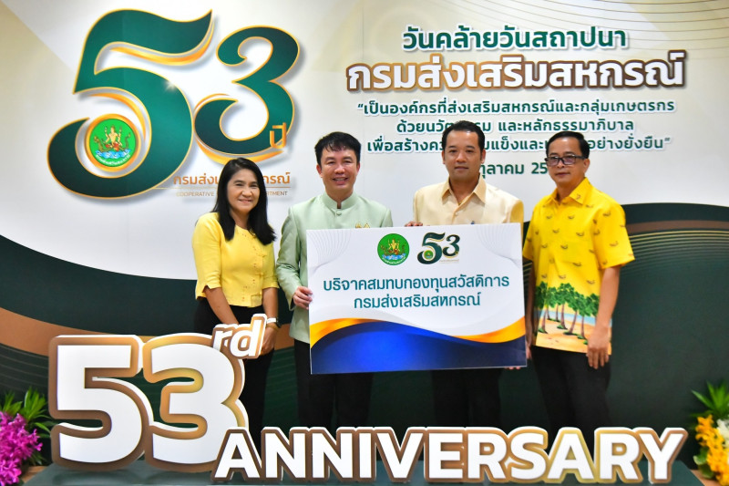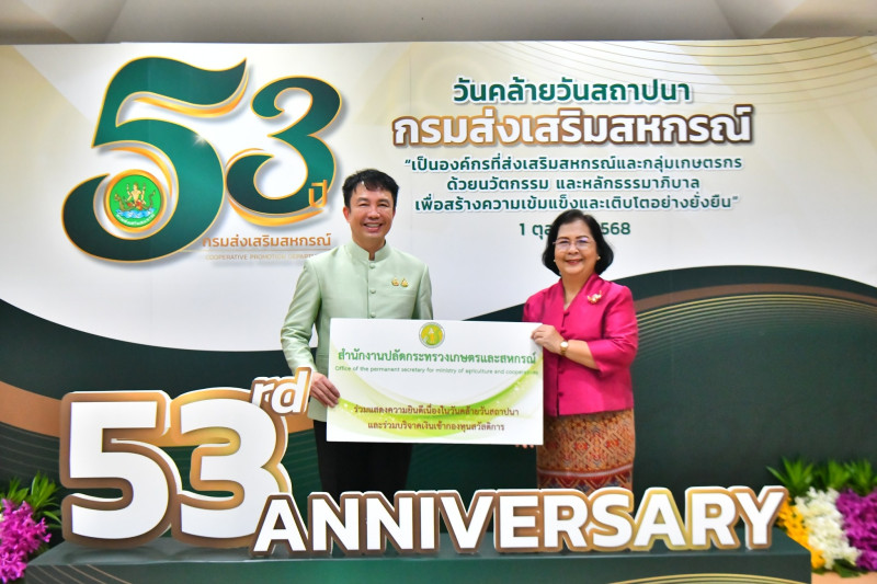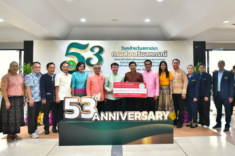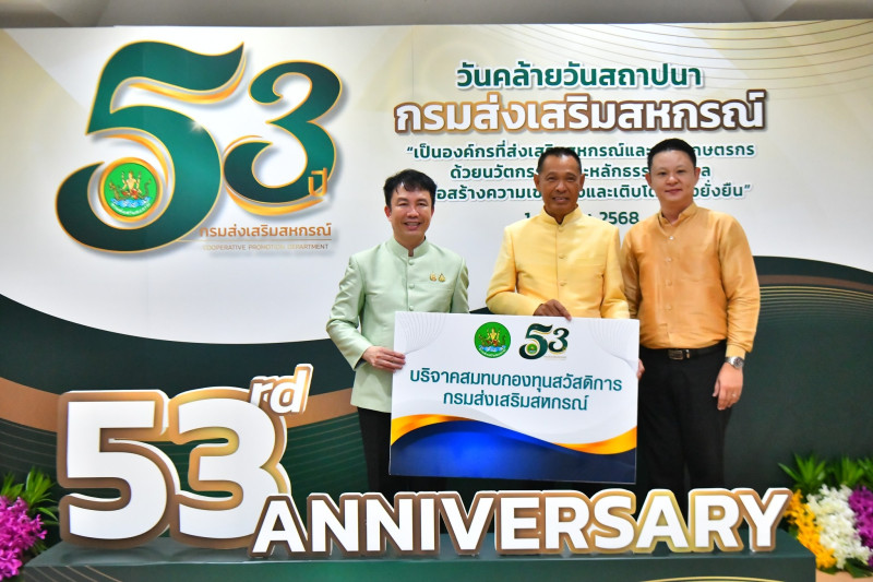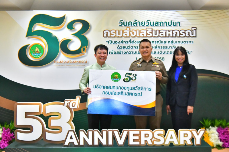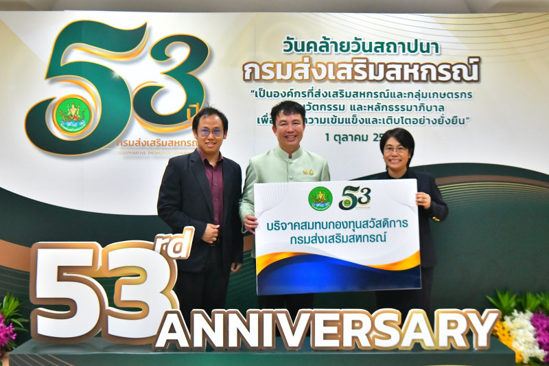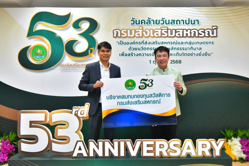 1 ตุลาคม 2568 นายนิรันดร์ มูลธิดา อธิบดีกรมส่งเสริมสหกรณ์ พร้อมด้วย นายประวัติ แดงบรรจง รองอธิบดีกรมส่งเสริมสหกรณ์ นายมนัส เทพรักษ์ รองอธิบดีกรมส่งเสริมสหกรณ์ ร่วมให้การต้อนรับผู้บริหารและผู้แทนจากหน่วยงานภายนอก ที่เดินทางมาแสดงความยินดีและร่วมบริจาคสมทบกองทุนสวัสดิการกรมส่งเสริมสหกรณ์ เนื่องในวันคล้ายวันสถาปนากรมส่งเสริมสหกรณ์ ครบรอบ 53 ปี ณ บริเวณโถงอาคาร 1 ชั้น 1 กรมส่งเสริมสหกรณ์ เทเวศร์ กรุงเทพมหานคร