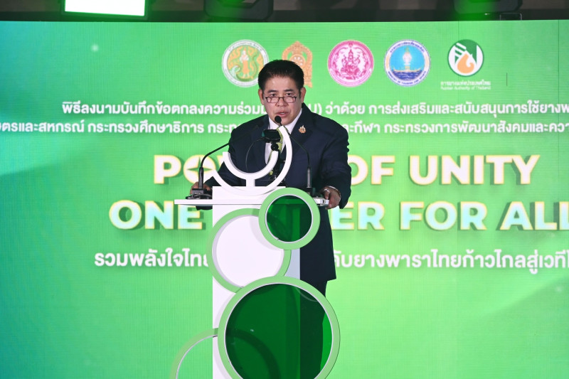 สำหรับการลงนามบันทึกข้อตกลงความร่วมมือในครั้งนี้ เป็นก้าวสำคัญที่จะผลักดันให้ยางพาราไทยนำมาใช้ประโยชน์อย่างมีความต่อเนื่องและเป็นรูปธรรมมากยิ่งขึ้น ซึ่งกระทรวงเกษตรและสหกรณ์ จะทำหน้าที่ประสานและบูรณาการความร่วมมือระหว่างหน่วยงานที่เกี่ยวข้อง เพื่อเพิ่มปริมาณการใช้ยางพาราภายในประเทศให้มีความยั่งยืน ทั้งการนำไปใช้ประโยชน์ในกิจกรรมด้านเกษตร การศึกษา กีฬา การท่องเที่ยว การพัฒนาสังคม โครงสร้างพื้นฐาน รวมถึงขยายการใช้ผลิตภัณฑ์ยางพาราในภาคส่วนต่าง ๆ ของสังคมไทย