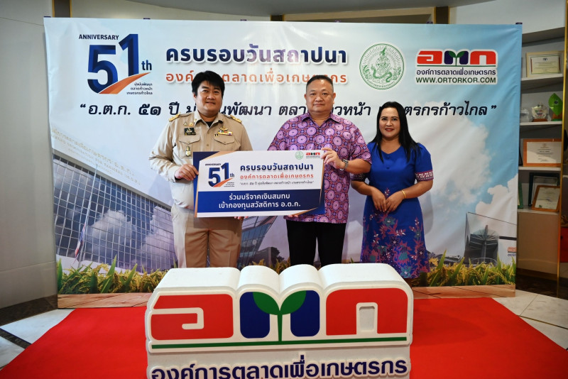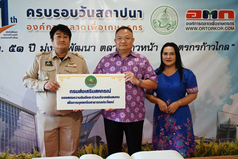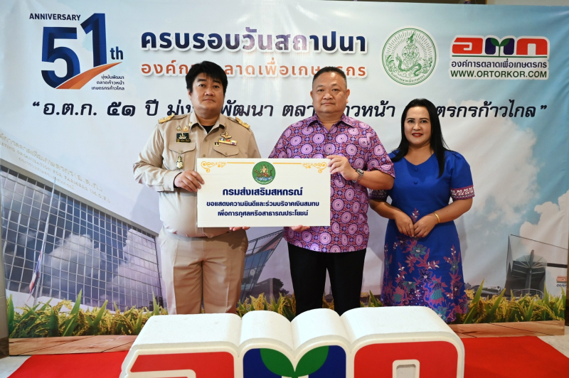 3 ตุลาคม 2568 นายสาธิต ปานขำ เลขานุการกรม ร่วมแสดงความยินดีเนื่องในวันคล้ายวันสถาปนาองค์การตลาดเพื่อเกษตรกร ครบรอบ 51 ปี พร้อมร่วมบริจาคเงินเพื่อสมทบเข้ากองทุนสวัสดิการ อ.ต.ก. โดยมี นายปณิธาน มีไชยโย ผู้อำนวยการองค์การตลาดเพื่อเกษตรกร เป็นผู้รับมอบ ณ บริเวณห้องโถง ชั้น 1 สำนักงาน อ.ต.ก. เขตจตุจักร กรุงเทพมหานคร