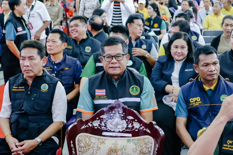 12 ตุลาคม 2568 ร้อยเอก ธรรมนัส พรหมเผ่า รองนายกรัฐมนตรี และรัฐมนตรีว่าการกระทรวงเกษตรและสหกรณ์ พร้อมด้วย นายอามินทร์ มะยูโซ๊ะ รัฐมนตรีช่วยว่าการกระทรวงเกษตรและสหกรณ์ และนายวิณะโรจน์ ทรัพย์ส่งสุข ปลัดกระทรวงเกษตรและสหกรณ์ ลงพื้นที่ตรวจสถานการณ์น้ำ และการขับเคลื่อนการดำเนินงานด้านเกษตรในพื้นที่จังหวัดนนทบุรี พร้อมมอบถุงยังชีพ เพื่อบรรเทาทุกข์แก่ประชาชนกลุ่มเปราะบางที่ได้รับผลกระทบจากสถานการณ์อุทกภัย โดยมี นายมนัส เทพรักษ์ รองอธิบดีกรมส่งเสริมสหกรณ์ นางปฐมพร สุทธนากร สหกรณ์จังหวัดนนทบุรี และผู้บริหารหน่วยงานสังกัดกระทรวงเกษตรและสหกรณ์ ร่วมลงพื้นที่ ณ โรงเรียนเบญจมราชานุสรณ์ ตำบลท่าทราย อำเภอเมือง จังหวัดนนทบุรี