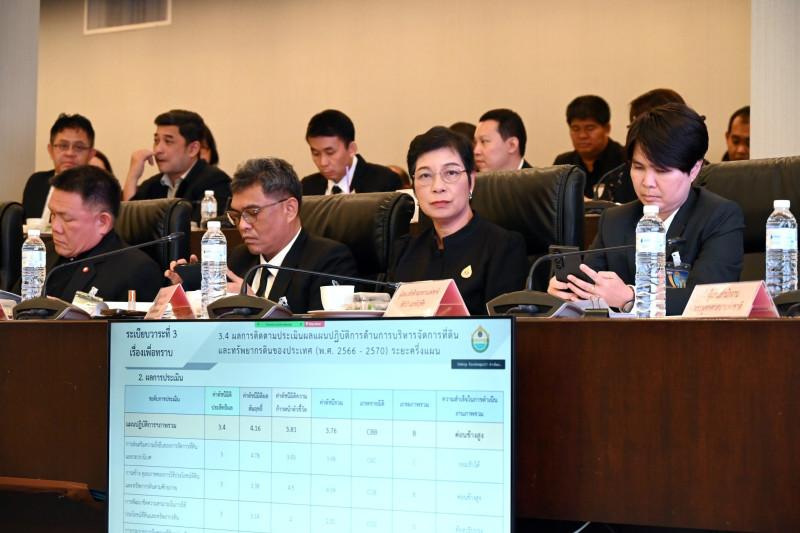 สำหรับการประชุมครั้งนี้ ที่ประชุมได้รับทราบผลการดำเนินงานของฝ่ายเลขานุการคณะกรรมการนโยบายที่ดินแห่งชาติและคณะอนุกรรมการภายใต้ คทช. รวมถึงรับทราบผลการรับฟังความคิดเห็นและการมีส่วนร่วมของผู้มีส่วนได้ส่วนเสีย ชุมชนที่เกี่ยวข้อง และประชาชนในการกำหนดแนวเขตอุทยานแห่งชาติทับลาน ตลอดจนผลการติดตามประเมินผลแผนปฏิบัติการด้านการบริหารจัดการที่ดินและทรัพยากรดินของประเทศ (พ.ศ. 2566 - 2570) (ระยะครึ่งแผน) จากนั้นที่ประชุมได้ร่วมกันพิจารณาประเด็นสำคัญต่างๆ เพื่อเร่งรัดการดำเนินงานและขับเคลื่อนการแก้ไขปัญหาความเดือดร้อนด้านที่ดินทำกินและที่อยู่อาศัยของประชาชนอย่างเป็นรูปธรรม
