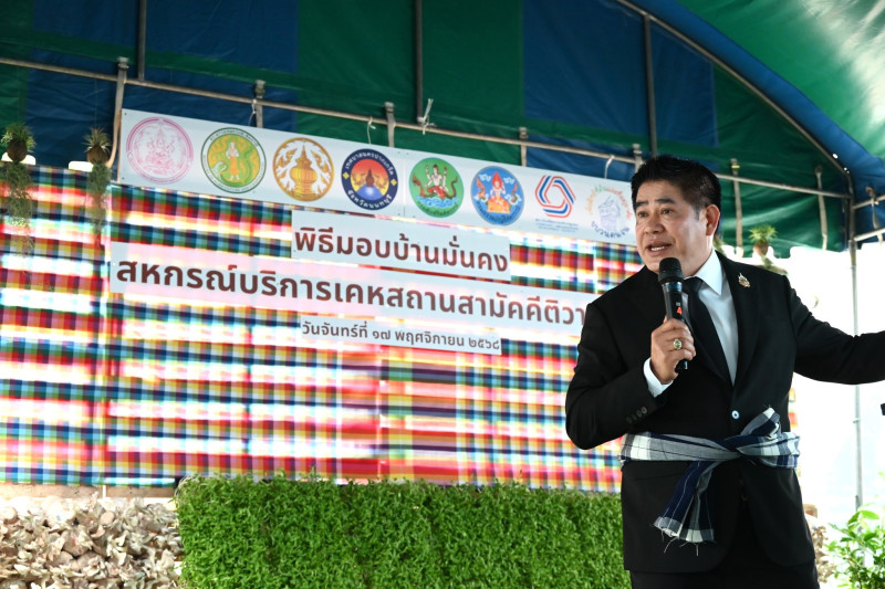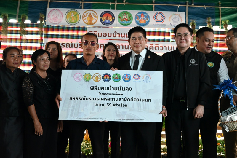 โอกาสนี้ รองนายกรัฐมนตรี ได้มอบ “บ้านมั่นคง” ให้แก่สมาชิกสหกรณ์ฯ จำนวน 59 หลัง เพื่อช่วยเหลือประชาชนกลุ่มเปราะบางที่เป็นผู้มีรายได้น้อย ซึ่งเดือดร้อนด้านที่อยู่อาศัย เป็นสัญลักษณ์ของการเริ่มต้นชีวิตใหม่ที่มั่นคงให้กับสมาชิกสหกรณ์ฯ โครงการนี้ถือเป็นรูปธรรมของความสำเร็จที่เปลี่ยนจากการบุกรุกมาเป็นการพัฒนาที่ดินด้วยกลไกสหกรณ์ โอกาสนี้ รองนายกรัฐมนตรี ได้กล่าวชื่นชมความพยายามของสมาชิกสหกรณ์ฯ ในการรวมกลุ่มและจัดการตนเอง พร้อมตอกย้ำว่ากลไกสหกรณ์คือเครื่องมือสร้างความมั่งคั่ง ที่สอดคล้องกับภารกิจบูรณาการระหว่างกระทรวงเกษตรและสหกรณ์ และกระทรวงการพัฒนาสังคมและความมั่นคงของมนุษย์
