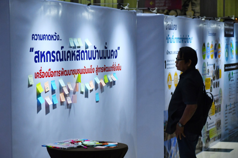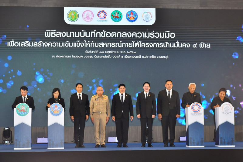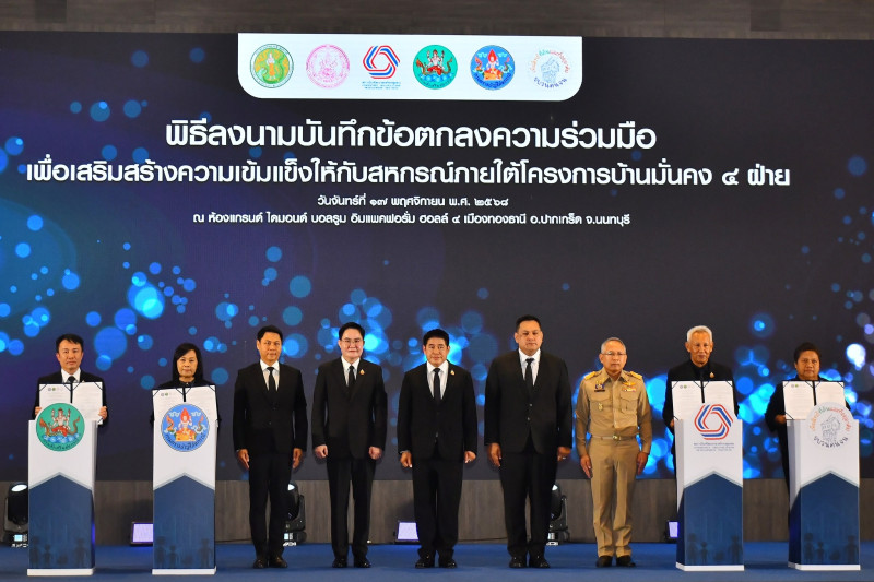 โอกาสนี้ รองนายกรัฐมนตรี และรัฐมนตรีว่าการกระทรวงเกษตรและสหกรณ์ ได้เยี่ยมชมนิทรรศการ "การพัฒนาที่อยู่อาศัยโครงการบ้านมั่นคง บ้านมากกว่าคำว่าบ้าน และรูปธรรมสหกรณ์ชุมชนบ้านมั่นคง : เครื่องมือการพัฒนาชุมชนเข้มแข็ง" พร้อมทั้งร่วมเป็นสักขีพยาน พิธีลงนามบันทึกข้อตกลงความร่วมมือเพื่อเสริมสร้างความเข้มแข็งให้กับสหกรณ์ภายใต้โครงการบ้านมั่นคง 4 ฝ่าย ได้แก่ กรมส่งเสริมสหกรณ์ กรมตรวจบัญชีสหกรณ์ สถาบันพัฒนาองค์กรชุมชน (องค์การมหาชน) และเครือข่ายสหกรณ์เคหสถานบ้านมั่นคง จากนั้นได้รับฟังข้อเสนอแนะ มอบนโยบาย และกล่าวให้กำลังใจ พร้อมย้ำถึงความตั้งใจที่จะเดินหน้าสานต่อโครงการดังกล่าว เพื่อให้เกิดประโยชน์สูงสุดแก่ประชาชน