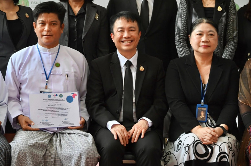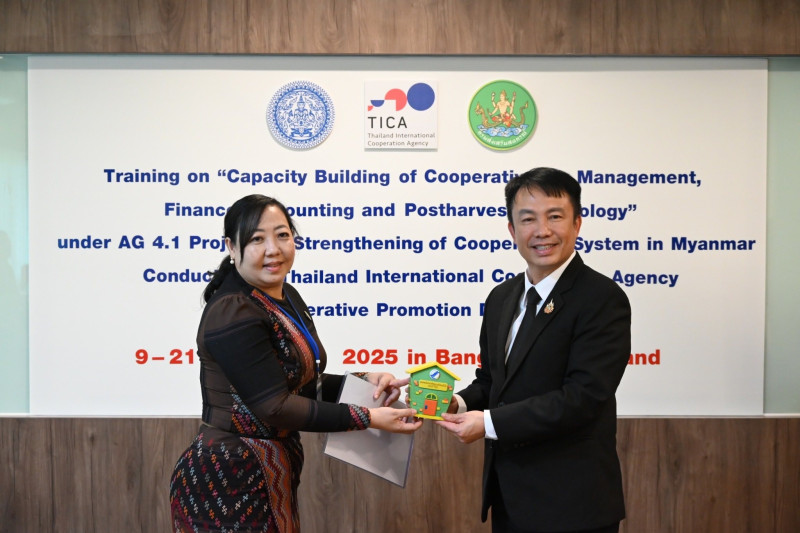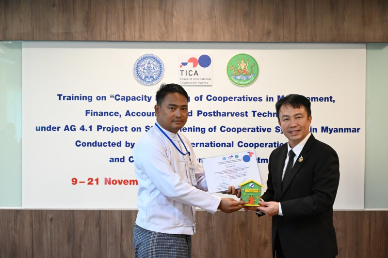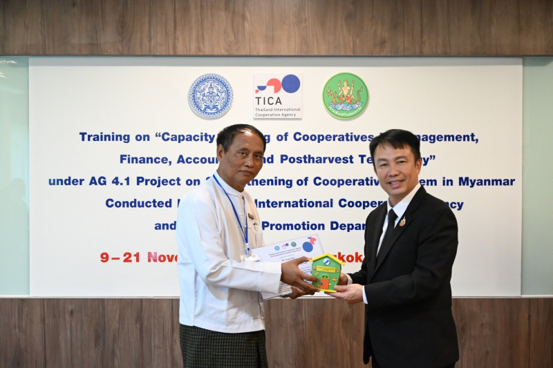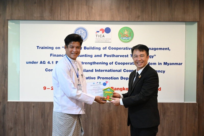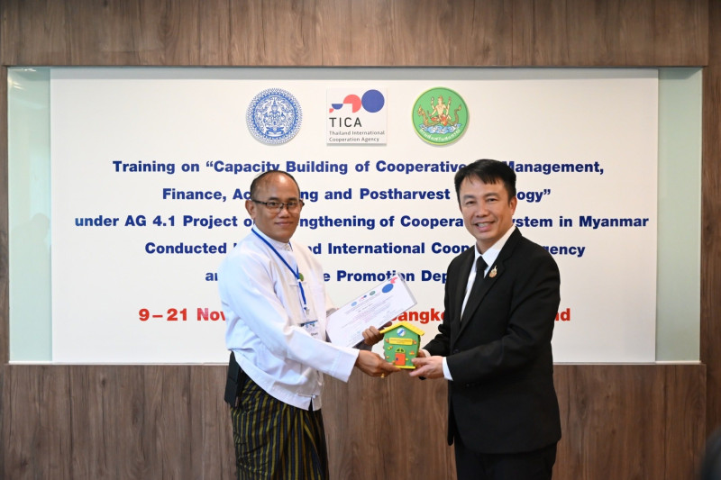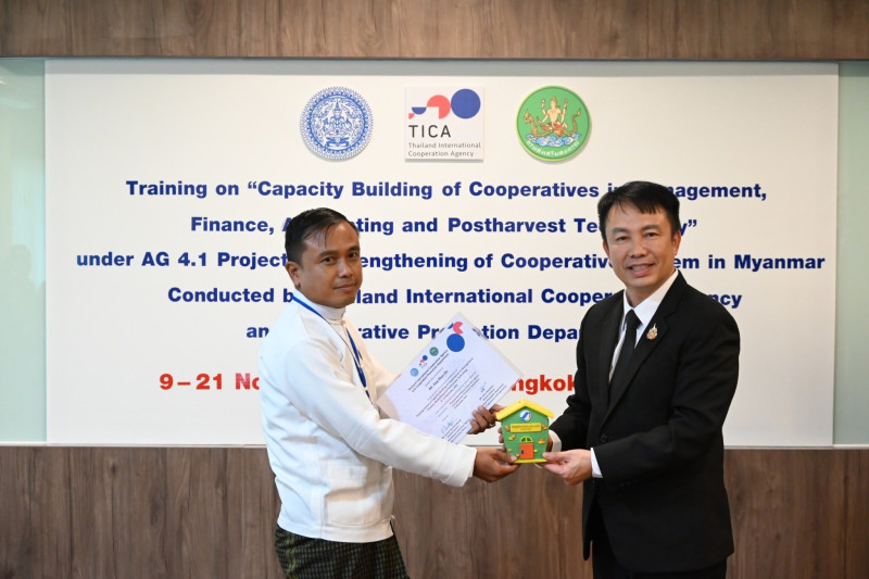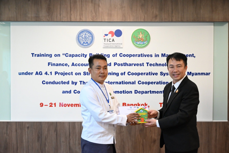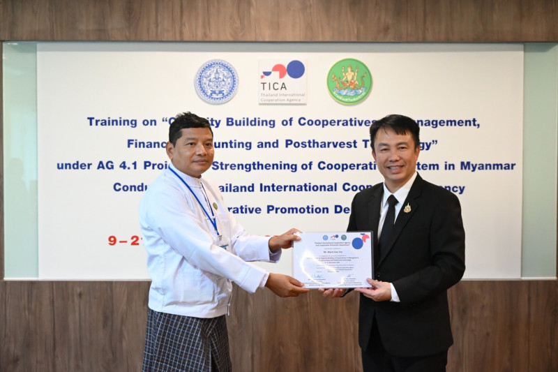 20 พฤศจิกายน 2568 นายนิรันดร์ มูลธิดา อธิบดีกรมส่งเสริมสหกรณ์ เป็นประธานในพิธีปิดโครงการฝึกอบรมหลักสูตร “การพัฒนาศักยภาพสหกรณ์ด้วยการจัดการ ด้านการเงิน การบัญชี และเทคโนโลยีหลังการเก็บเกี่ยว” ภายใต้โครงการเสริมสร้างความเข้มแข็งแก่ระบบสหกรณ์ในเมียนมา (AG 4.1 Project on Strengthening of Cooperative System in Myanmar) และมอบประกาศณียบัตรสำหรับผู้ผ่านการอบรม จำนวน 9 คน โดยมี นางสาวปรานอม จันทร์ใหม่ ผู้เชี่ยวชาญ รักษาการในตำแหน่ง ผู้ทรงคุณวุฒิด้านการสหกรณ์ นายพิษณุ พินรอด ผู้อำนวยการสำนักพัฒนาและถ่ายทอดเทคโนโลยีการสหกรณ์ นายนาถ บำรุงพาณิชย์ ผู้อำนวยการกองแผนงาน นางชัชสรัญย์ เลิศเกียรติวงศ์ ผู้อำนวยการกองความร่วมมือเพื่อการพัฒนาระหว่างประเทศ กรมความร่วมมือระหว่างประเทศ และเจ้าหน้าที่ที่เกี่ยวข้อง ร่วมพิธีปิด ณ ห้องรับรอง ชั้น 2 อาคารฝึกอบรมส่วนกลาง สำนักพัฒนาและถ่ายทอดเทคโนโลยีการสหกรณ์ เขตดุสิต กรุงเทพมหานคร