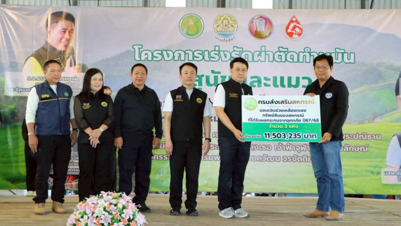 จากนั้น รัฐมนตรีช่วยว่าการกระทรวงเกษตรและสหกรณ์ ได้มอบเงินช่วยเหลือชดเชยทรัพย์สินของสหกรณ์ที่ได้รับผลกระทบจากอุทกภัย ปี 2567 และ 2568 จำนวน 3 แห่ง รวมเป็นเงินทั้งสิ้น 11,503,203 บาท มอบเงินช่วยเหลือชดเชยดอกเบี้ยให้แก่สมาชิกสหกรณ์/กลุ่มเกษตรกรที่รับผลกระทบจากอุทกภัย จำนวน 5 แห่ง รวมเป็นเงินทั้งสิ้น 554,843.04 บาท มอบเงินสนับสนุนเงินกู้กองทุนพัฒนาสหกรณ์ (กพส.) วัตถุประสงค์เพื่อรวบรวมข้าวแก่สหกรณ์ จำนวน 3 แห่ง รวมเป็นเงินทั้งสิ้น 20,500,000 บาท และมอบหนังสือแสดงการทำประโยชน์ที่ดินแก่ราษฎร จำนวน 7 ราย พร้อมเยี่ยมชมกิจกรรมส่งเสริมการดื่มนมจากหน่วยงานสังกัดกระทรวงเกษตรและสหกรณ์ ซึ่งจัดขึ้นภายใต้แนวคิด “ดื่มนมทุกวัน ดื่มได้ทุกวัย” เพื่อกระตุ้นให้ประชาชนเห็นความสำคัญของการดูแลสุขภาพและสร้างความมั่นคงทางอาชีพให้กับเกษตรกรผู้เลี้ยงโคนมไทยอีกด้วย