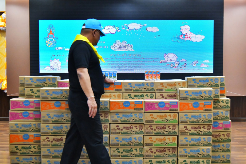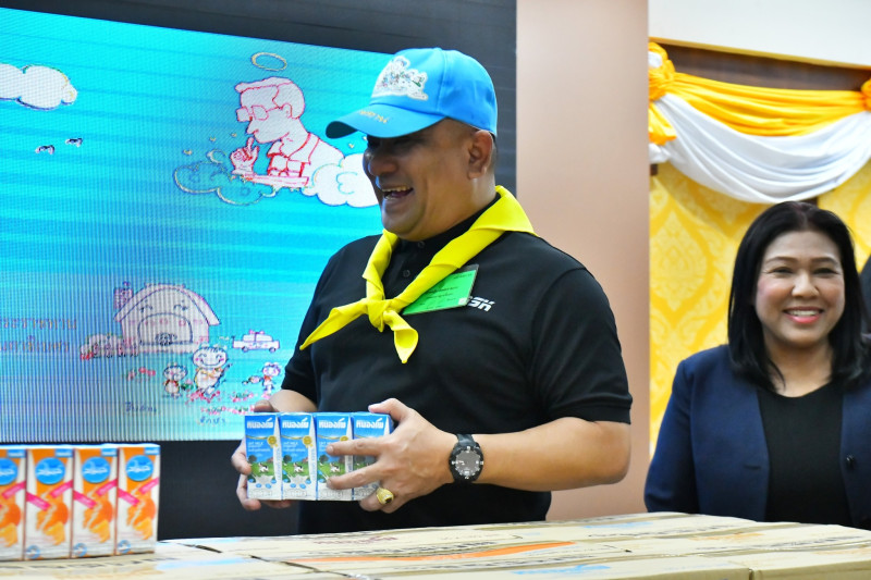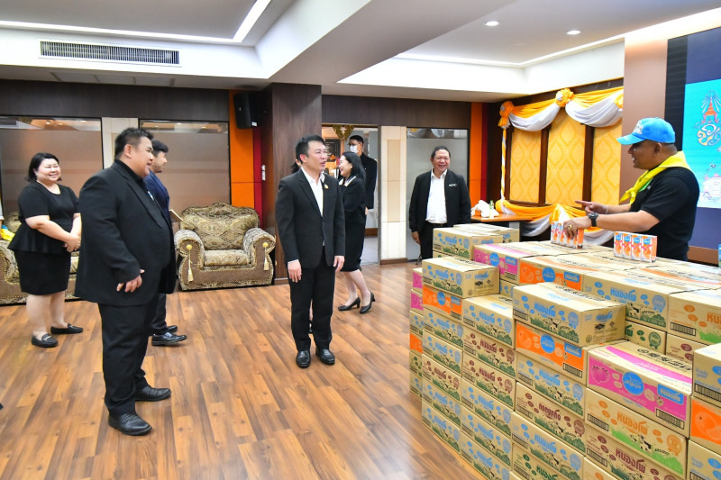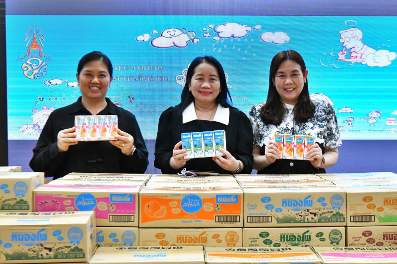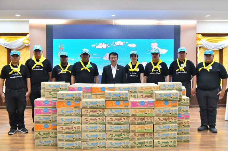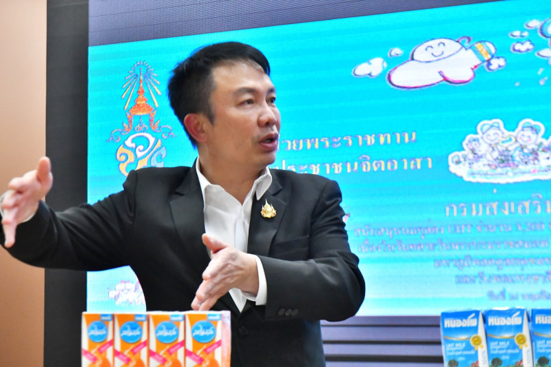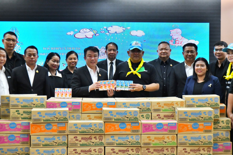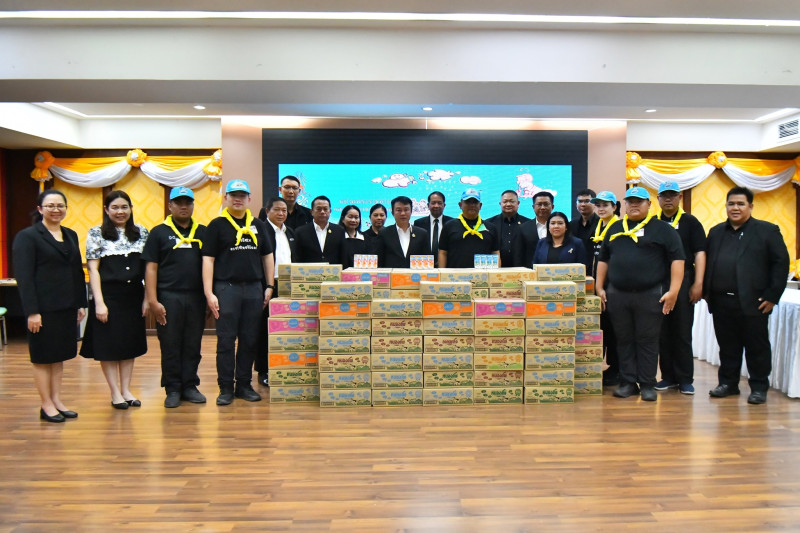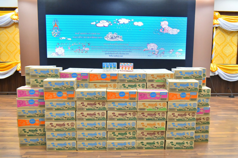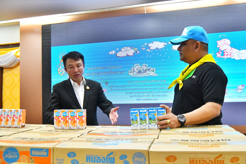 อธิบดีกรมส่งเสริมสหกรณ์ พร้อมด้วย คณะผู้บริหารกรมส่งเสริมสหกรณ์ ร่วมมอบนมกล่อง UHT ของสหกรณ์โคนมหนองโพราชบุรี จำกัด (ในพระบรมราชูปถัมภ์)