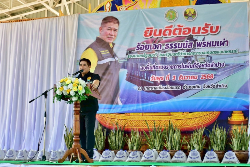 3 ธันวาคม 2568 ร้อยเอก ธรรมนัส พรหมเผ่า รองนายกรัฐมนตรีและรัฐมนตรีว่าการกระทรวงเกษตรและสหกรณ์ ลงพื้นที่ตรวจราชการจังหวัดลำปาง เพื่อติดตามความก้าวหน้าโครงการประตูระบายน้ำแม่น้ำวังบ้านเหล่า ณ ตำบลล้อมแรด อำเภอเถิน จังหวัดลำปาง พร้อมทั้งติดตามปัญหาการขุดลอกแม่น้ำวัง งานป้องกันตลิ่ง และการพัฒนาแหล่งน้ำในพื้นที่อำเภอแม่พริกและอำเภอใกล้เคียง โดยมี นายประวัติ แดงบรรจง รองอธิบดีกรมส่งเสริมสหกรณ์ นายสัญญาชัย กองเขต สหกรณ์จังหวัดลำปาง และผู้บริหารกระทรวงเกษตรและสหกรณ์ ร่วมลงพื้นที่