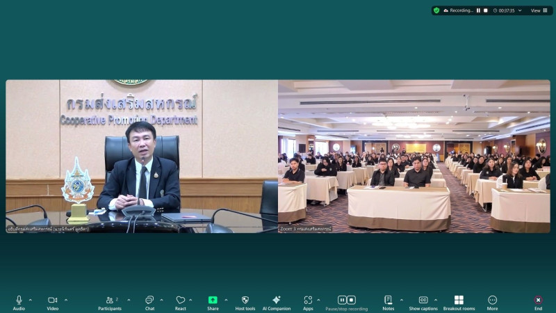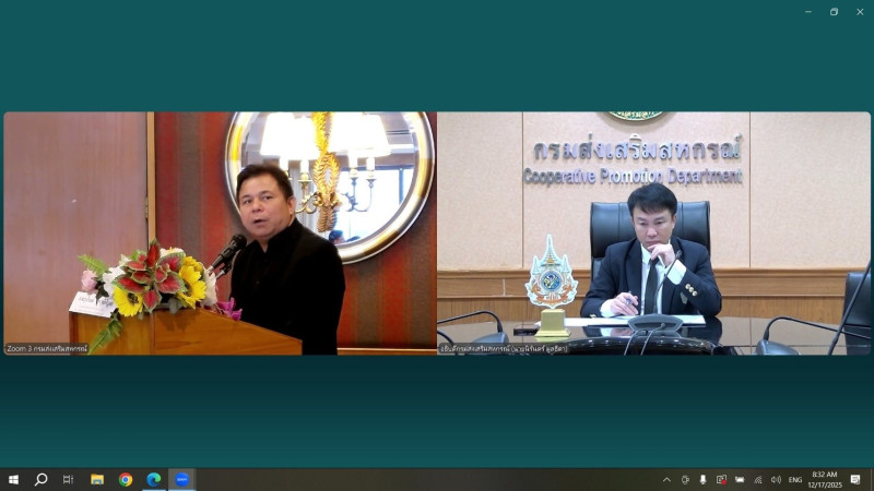 17 ธันวาคม 2568 นายนิรันดร์ มูลธิดา อธิบดีกรมส่งเสริมสหกรณ์ เป็นประธานเปิดโครงการฝึกอบรม หลักสูตร "พัฒนาทักษะความรู้กฎหมาย ว่าด้วยสหกรณ์ เพิ่มประสิทธิภาพการตรวจสอบให้ก้าวทันการเปลี่ยนแปลง (สำหรับเจ้าหน้าที่กลุ่มจัดตั้งและส่งเสริมสหกรณ์และเจ้าหน้าที่ส่งเสริมสหกรณ์)” ผ่านระบบ Zoom Meeting ณ ห้องประชุม ชั้น 6 กรมส่งเสริมสหกรณ์ เทเวศร์ กรุงเทพมหานคร ซึ่งจัดขึ้นระหว่างวันที่ 17 - 19 ธันวาคม 2568 ณ โรงแรมรอยัล ริเวอร์ กรุงเทพมหานคร