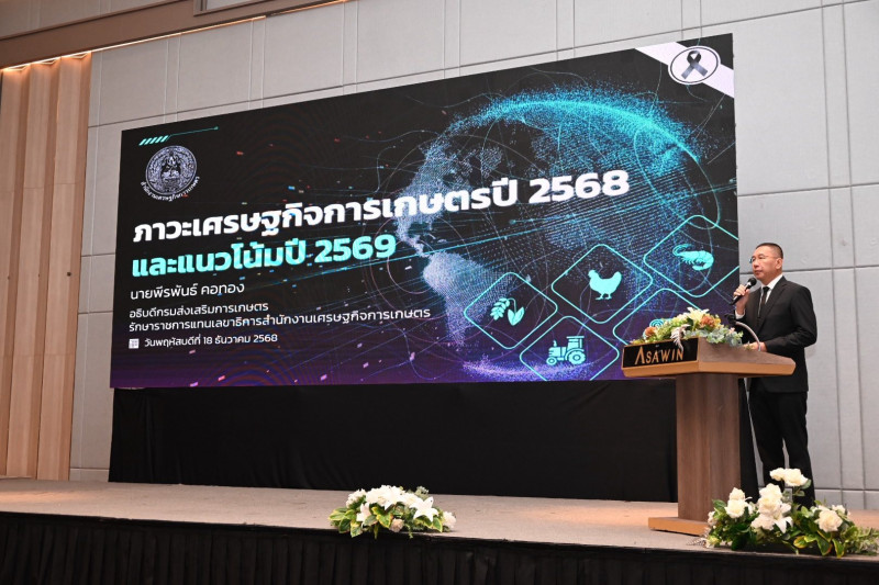 18 ธันวาคม 2568 นายสาธิต ปานขำ เลขานุการกรม พร้อมด้วย นายนาถ บำรุงพาณิชย์ ผู้อำนวยการกองแผนงาน เข้าร่วมพิธีเปิดการสัมมนา เรื่อง ภาวะเศรษฐกิจการเกษตร ปี 2568 และแนวโน้มปี 2569 Agrivolution : พลิกเกมส์เกษตรทันอนาคต โดยมี นายพีรพันธ์ คอทอง อธิบดีกรมส่งเสริมการเกษตร รักษาราชการแทน เลขาธิการสำนักงานเศรษฐกิจการเกษตร เป็นประธานในพิธีเปิด ณ ห้องอัศวิน แกรนด์ บอลรูม โรงแรมอัศวิน แกรนด์ คอนเวนชัน เขตหลักสี่ กรุงเทพมหานคร