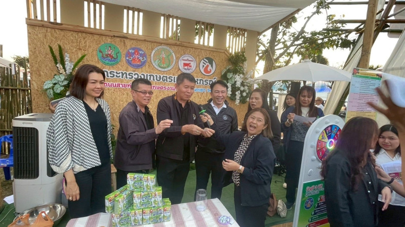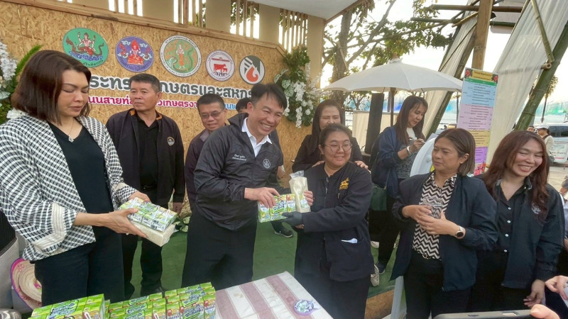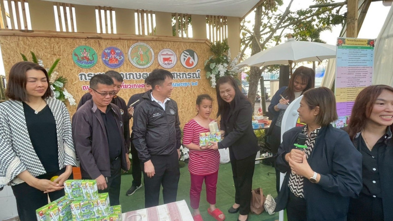 โอกาสนี้ อธิบดีกรมส่งเสริมสหกรณ์ ได้มอบข้าวหอมละมุน ของสหกรณ์การเกษตรจุน จำกัด และมอบผลิตภัณฑ์ นมไทย-เดนมาร์ค จากองค์การส่งเสริมกิจการโคนมแห่งประเทศไทย และผลิตภัณฑ์ นมดัชมิลล์ จากบริษัท ดัชมิลล์ จำกัด ให้แก่ผู้เข้าร่วมงานและนักท่องเที่ยว เพื่อเป็นการประชาสัมพันธ์และสนับสนุนการบริโภคสินค้าคุณภาพของเกษตรกรไทยอีกด้วย