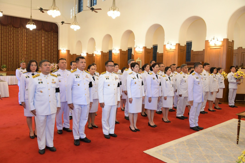 นายวิณะโรจน์ ทรัพย์ส่งสุข ปลัดกระทรวงเกษตรและสหกรณ์ พร้อมด้วย นายณฤทธิ์ บุญชัย รองอธิบดีกรมส่งเสริมสหกรณ์ และคณะผู้บริหารในสังกัดกระทรวงเกษตรและสหกรณ์ ร่วมทูลเกล้าทูลกระหม่อมถวายแจกันดอกไม้สด