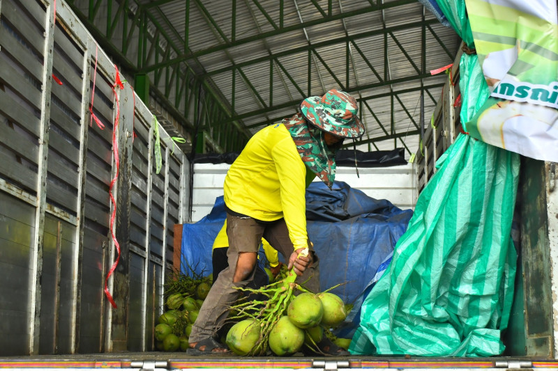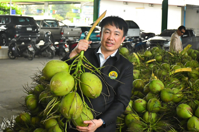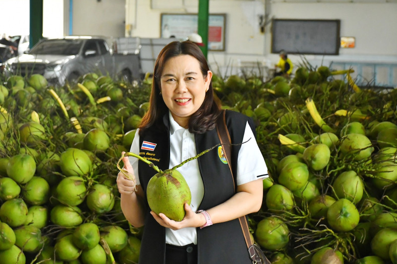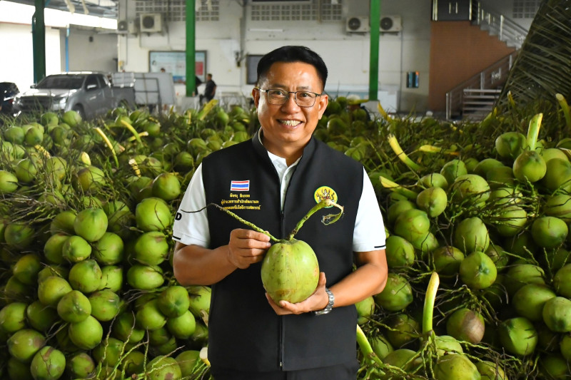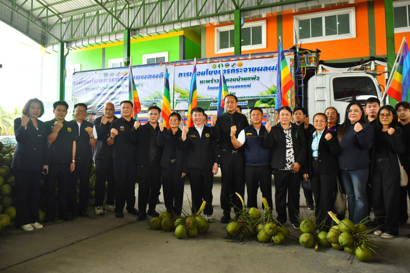 อธิบดีกรมส่งเสริมสหกรณ์ เปิดเผยว่า ในวันนี้ได้มาตรวจเยี่ยมการรวบรวมผลผลิตมะพร้าวน้ำหอมของเกษตรกรในพื้นที่จังหวัดสมุทรสาคร ขณะนี้พบว่าเกษตรกรชาวสวนมะพร้าวกำลังเผชิญปัญหาผลผลิตตกต่ำอย่างหนัก เมื่อเทียบกับเดือนกุมภาพันธ์ 2568 ราคามะพร้าวหน้าสวนเฉลี่ยลูกละ 23 - 28 บาท แต่ปัจจุบันราคาที่เกษตรกรขายหน้าสวนลดลงเหลือ ลูกละ 2 บาท กรมส่งเสริมสหกรณ์จึงหาแนวทางให้ความช่วยเหลือในเบื้องต้นเพื่อบรรเทาปัญหาและยกระดับราคาในระยะเร่งด่วน โดยใช้กลไกตลาดของเครือข่ายสหกรณ์เข้ามาช่วยแก้ปัญหาให้กับเกษตรกรชาวสวนมะพร้าว ในจังหวัดสมุทรสาครและจังหวัดราชบุรี โดยมีเป้าหมายในการรวบรวมทั้ง 2 จังหวัด 1,000,000 ลูก และมีแผนกระจายผลผลิตมะพร้าวไปยังเครือข่ายสหกรณ์ในภาคตะวันออกเฉียงเหนือ 30,000 ลูก ซึ่งในวันนี้จะมีการปล่อยรถบรรทุกมะพร้าวน้ำหอมไปตลาดปลายทางที่จังหวัดร้อยเอ็ด โดยสหกรณ์การเกษตรเกษตรวิสัย จำกัด จังหวัดมหาสารคาม โดยสหกรณ์การเกษตรบรบือ จำกัด และจังหวัดยโสธร โดยสหกรณ์การเกษตรกุดชุม จำกัด สั่งซื้อจากสหกรณ์การเกษตรบ้านแพ้ว จำกัด จำนวน 20,000 ลูก ขณะที่สหกรณ์ต้นทางที่รวบรวมมะพร้าวน้ำหอมรับซื้อผลผลิตจากสมาชิกในราคาลูกละ 5 บาท และส่งขายให้เครือข่ายสหกรณ์ตลาดปลายทาง ลูกละ 6-7 บาท