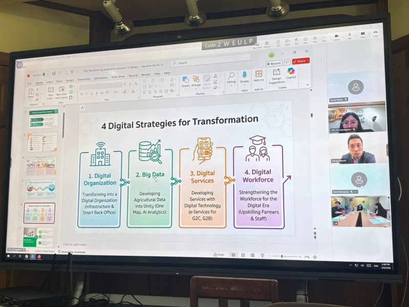 9 มีนาคม 2569 นางสาวปรานอม จันทร์ใหม่ ผู้เชี่ยวชาญ รักษาการในตำแหน่งผู้ทรงคุณวุฒิด้านการสหกรณ์ เป็นประธานการประชุม ภายใต้โครงการพัฒนาห่วงโซ่คุณค่าอาหารอาเซียน–ไจก้า (ASEAN-Japan Food Value Chain Development Project: AJFVC) กิจกรรมการสัมภาษณ์เบื้องต้นเกี่ยวกับภูมิทัศน์ของความร่วมมือระหว่างภาครัฐและภาคเอกชน (Public-Private Partnership: PPP) เพื่อใช้ประกอบการจัดทำเอกสารข้อเสนอเชิงนโยบาย (Policy Recommendation Paper) โดยมี ผู้แทนจากฝ่ายญี่ปุ่น ได้แก่ นาย Shingo Kikuchi จาก SK Consulting, LLC ผู้แทน JICA พร้อมด้วยผู้แทนกองแผนงาน และกองพัฒนาสหกรณ์ภาคการเกษตรและกลุ่มเกษตรกร เข้าร่วมประชุมผ่านระบบออนไลน์ ณ ห้องประชุมกองแผนงาน ชั้น 2 กรมส่งเสริมสหกรณ์ เทเวศร์ กรุงเทพมหานคร