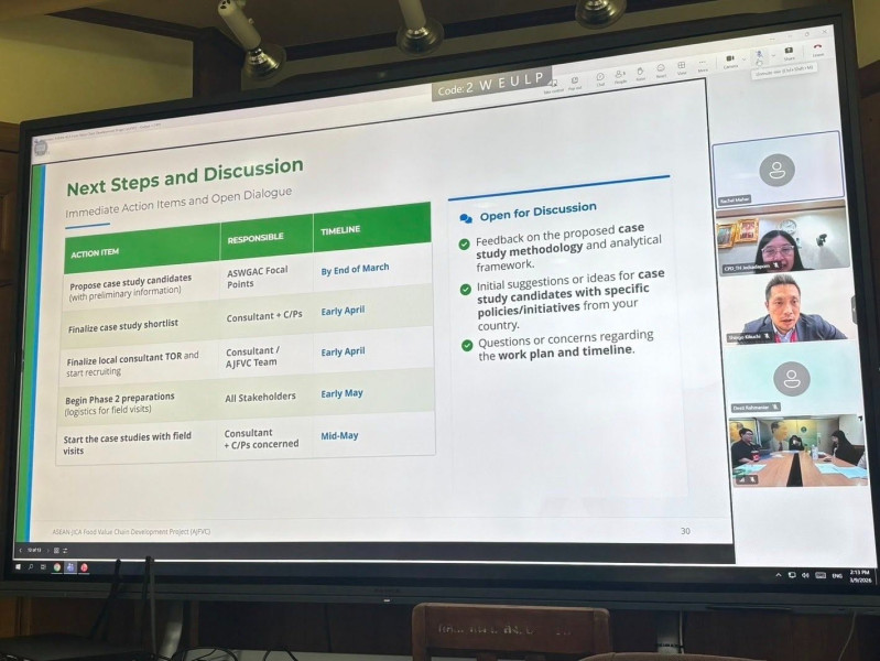 ในการประชุมครั้งนี้ ฝ่ายญี่ปุ่นได้นำเสนอข้อมูลเกี่ยวกับโครงการพัฒนาห่วงโซ่คุณค่าอาหารอาเซียน–ไจก้า (ASEAN-Japan Food Value Chain Development Project: AJFVC) ซึ่งเป็นโครงการความร่วมมือทางวิชาการภายใต้กรอบความตกลงความร่วมมือทางวิชาการระหว่างประเทศญี่ปุ่นและประเทศสมาชิกอาเซียน โดยมีกำหนดระยะเวลาดำเนินการตั้งแต่ ปี 2567 -2570 รวมระยะเวลา 3 ปี โดยมีวัตถุประสงค์เพื่อส่งเสริมการพัฒนาระบบและสภาพแวดล้อมที่เอื้อต่อการพัฒนาห่วงโซ่คุณค่าอาหาร (Food Value Chain: FVC) ในภูมิภาคอาเซียน