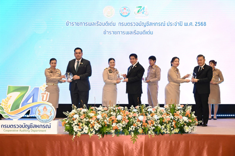 โอกาสนี้ ร้อยเอก ธรรมนัส พรหมเผ่า รองนายกรัฐมนตรีและรัฐมนตรีว่าการกระทรวงเกษตรและสหกรณ์ ได้เยี่ยมชมนิทรรศการ “74 ปี กรมตรวจบัญชีสหกรณ์ ยกระดับมาตรฐาน เชื่อมโยงเทคโนโลยี เพื่อขับเคลื่อนสหกรณ์สู่ความยั่งยืน“ จากนั้น ได้มอบประกาศเกียรติคุณและโล่รางวัลข้าราชการพลเรือนดีเด่น กรมตรวจบัญชีสหกรณ์ ประจำปี 2568 และมอบรางวัลการออกแบบตราสัญลักษณ์ ครบรอบวันสถาปนา 74 ปี กรมตรวจบัญชีสหกรณ์