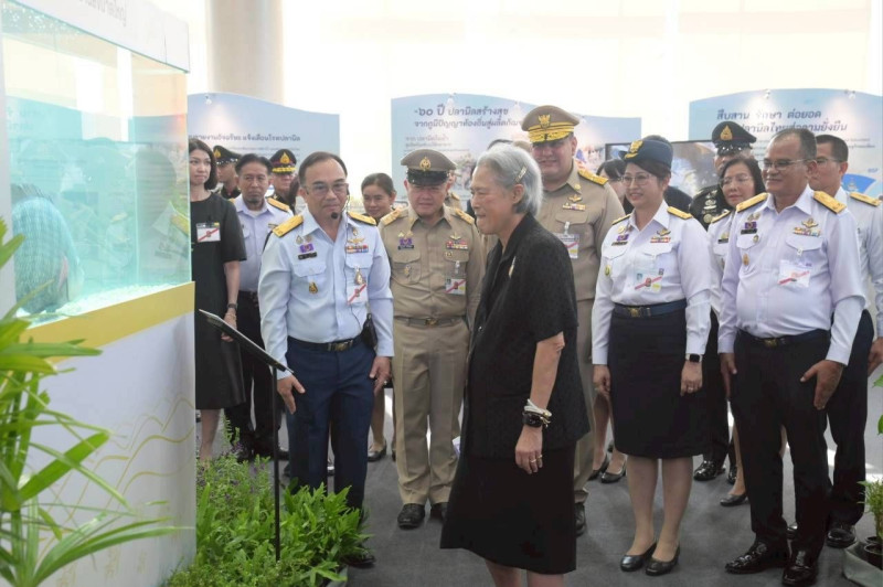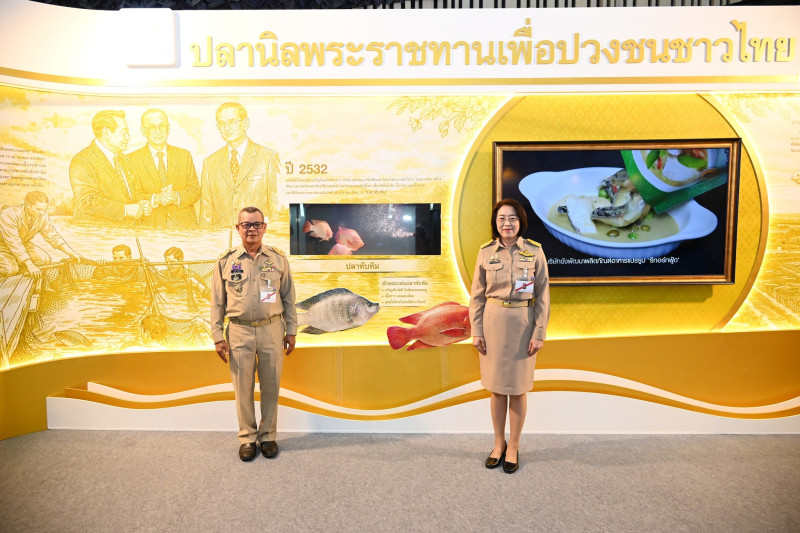 โอกาสนี้ สมเด็จพระกนิษฐาธิราชเจ้า กรมสมเด็จพระเทพรัตนราชสุดา ฯ สยามบรมราชกุมารี ทรงเสด็จทอดพระเนตรนิทรรศการเฉลิมพระเกียรติ 60 ปี ปลานิลพระราชทานเพื่อปวงชนชาวไทย ซึ่งมีการจัดแสดงโดยแบ่งเป็น 5 โซนที่สำคัญ ดังนี้ โซนที่ 1 พระอัจฉริยภาพ “ปลาของพ่อ” โซนที่ 2 จากบ่อปลาหลังบ้านสู่มูลค่าเศรษฐกิจระดับโลก โซนที่ 3 วิถีการเลี้ยง สู่ความปลอดภัย มั่นคง และยั่งยืนทางอาหาร โซนที่ 4 จากภูมิปัญญาสู่การสร้างมูลค่าปลานิลไทย โซนที่ 5 สืบสาน รักษา ต่อยอด ปลานิลไทยสู่ความยั่งยืน และหน่วยงานภาคเอกชน นอกจากนี้ ได้ทรงทอดพระเนตรการจัดแสดงผลงานผู้ชนะการประกวดชิงถ้วยพระราชทานฯ โดยแบ่งเป็น การประกวดวาดภาพระบายสี-ภาพถ่าย ในหัวข้อ “มีอยู่ มีกิน เพราะปลานิลของพ่อ” และมีการโชว์ปลานิลยักษ์ที่ชนะการประกวดสุดยอดปลานิล ซึ่งหนักกว่า 8 กิโลกรัม