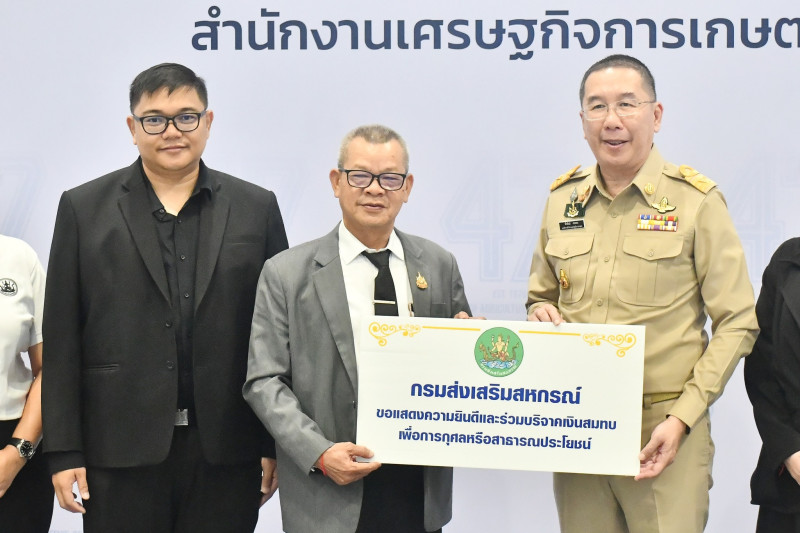 24 มีนาคม 2569 นายประวัติ แดงบรรจง รองอธิบดีกรมส่งเสริมสหกรณ์ ร่วมแสดงความยินดี เนื่องในโอกาสวันคล้ายวันสถาปนาสำนักงานเศรษฐกิจการเกษตร ครบรอบ 47 ปี และร่วมบริจาคเพื่อสมทบทุนให้แก่มูลนิธิ ดร.สมนึก ศรีปลั่ง โดยมี นายพีรพันธ์ คอทอง เลขาธิการสำนักงานเศรษฐกิจการเกษตร เป็นผู้รับมอบ ณ สำนักงานเศรษฐกิจการเกษตร เขตจตุจักร กรุงเทพมหานคร