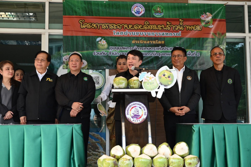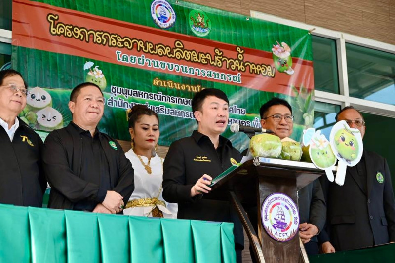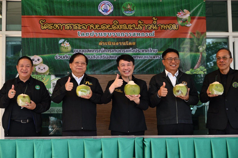 24 มีนาคม 2569 นายนิรันดร์ มูลธิดา อธิบดีกรมส่งเสริมสหกรณ์ เป็นประธานในพิธีเปิดงาน “โครงการกระจายผลผลิตมะพร้าวน้ำหอมโดยขบวนการสหกรณ์” โดยมี นายพิษณุ พินรอด ผู้อำนวยการกองพัฒนาสหกรณ์ภาคการเกษตรและกุล่มเกษตรกร นายคีตวุฒิ นับแสง ผู้ตรวจราชการกรม นางสาวกมลวรรณ นุชัย ผู้อำนวยการสำนักงานส่งเสริมสหกรณ์ กรุงเทพมหานคร พื้นที่ 2 นายศิริชัย ออสุวรรณ ประธานที่ปรึกษาชุมนุมสหกรณ์การเกษตรแห่งประเทศไทย จำกัด พร้อมด้วยผู้แทนจากสหกรณ์การเกษตรเพื่อการตลาดลูกค้า ธ.ก.ส.ราชบุรี จำกัด ผู้แทนจากสหกรณ์ปลายทางที่สั่งซื้อมะพร้าวน้ำหอม และคณะเจ้าหน้าที่ชุมนุมสหกรณ์การเกษตรแห่งประเทศไทย จำกัด ร่วมให้การต้อนรับ ณ ชุมนุมสหกรณ์การเกษตรแห่งประเทศไทย จำกัด ถนนงามวงศ์วาน กรุงเทพฯ