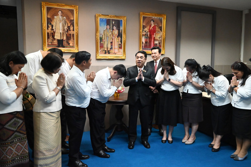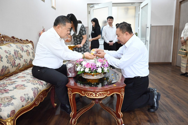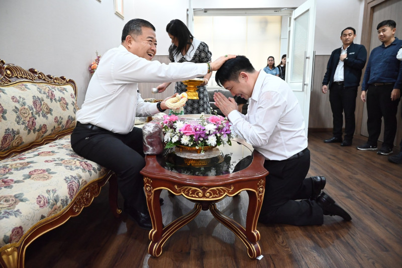 อธิบดีกรมส่งเสริมสหกรณ์ นำคณะผู้บริหารกรมส่งเสริมสหกรณ์ เข้ารดน้ำขอพร นายสุริยะ จึงรุ่งเรืองกิจ รัฐมนตรีว่าการกระทรวงเกษตรและสหกรณ์