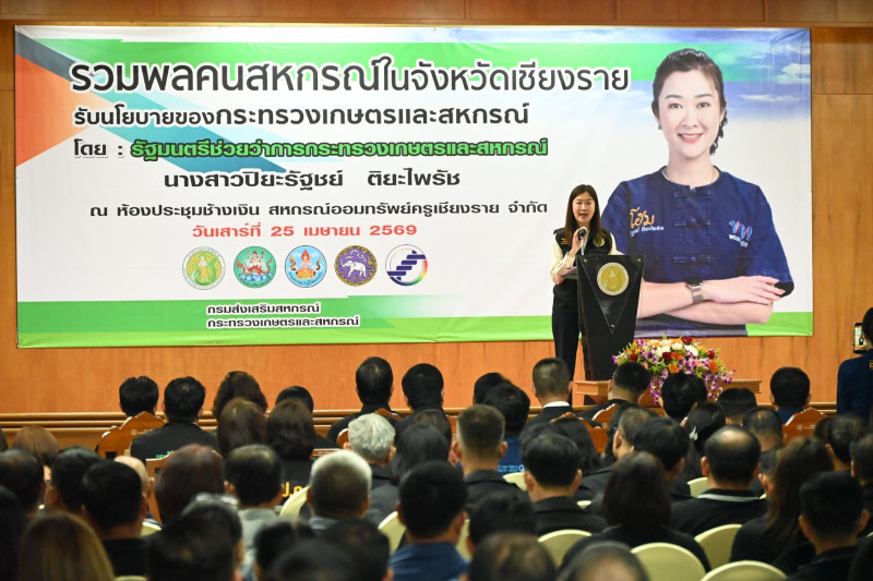 25 เมษายน 2569 นางสาวปิยะรัฐชย์ ติยะไพรัช รัฐมนตรีช่วยว่าการกระทรวงเกษตรและสหกรณ์ เป็นประธานเปิดงาน “รวมพลคนสหกรณ์ในจังหวัดเชียงราย” โดยมี นายนิรันดร์ มูลธิดา อธิบดีกรมส่งเสริมสหกรณ์ นายคีตวุฒิ นับแสง ผู้ตรวจราชการกรม ส่วนกลาง และเขตตรวจราชการที่ 16 นายนรินทร์ศักดิ์ พนิตธรรมกูล สหกรณ์จังหวัดเชียงราย พร้อมด้วยผู้บริหารสังกัดกระทรวงเกษตรและสหกรณ์ ผู้บริหารกรมส่งเสริมสหกรณ์ สหกรณ์จังหวัดในพื้นที่ใกล้เคียง ผู้แทนสหกรณ์ เกษตรกรในจังหวัดเชียงราย และผู้แทนจากหน่วยงาน องค์กรภาครัฐ และรัฐวิสาหกิจ เข้าร่วมจำนวน 500 คน ณ ห้องประชุมสหกรณ์ออมทรัพย์ครูเชียงราย จำกัด ตำบลบ้านดู่ อำเภอเมืองเชียงราย จังหวัดเชียงราย
