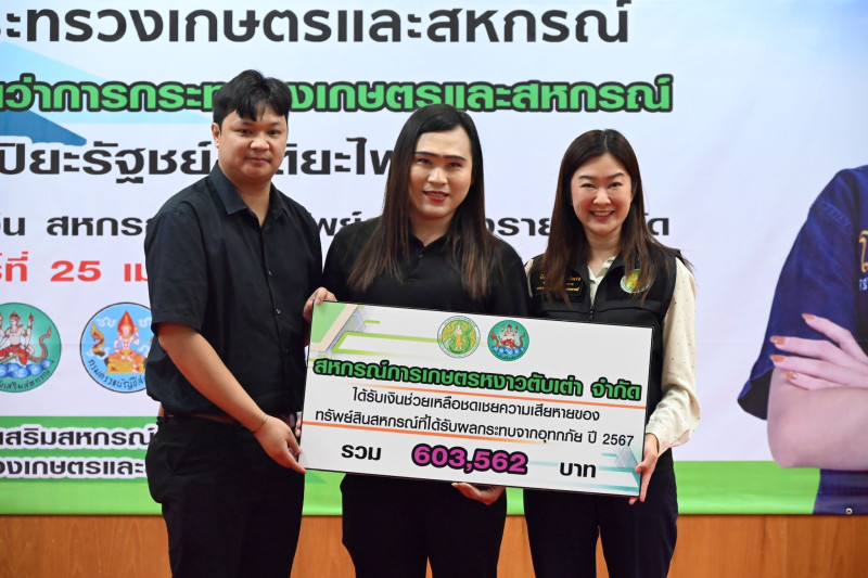 รวมทั้งมอบเงินตามมาตรการช่วยเหลือและฟื้นฟูเยียวยาสมาชิกสหกรณ์/กลุ่มเกษตรกร ที่ได้รับผลกระทบจากอุทกภัย ปี 2567 โดยช่วยเหลือด้านทรัพย์สินของสหกรณ์ที่ได้รับผลกระทบในการดำเนินธุรกิจรวบรวมผลผลิตทางการเกษตร จำนวน 1 แห่ง ได้แก่ สหกรณ์การเกษตรหงาวตับเต่า จำกัด เป็นเงิน 603,562 บาท
