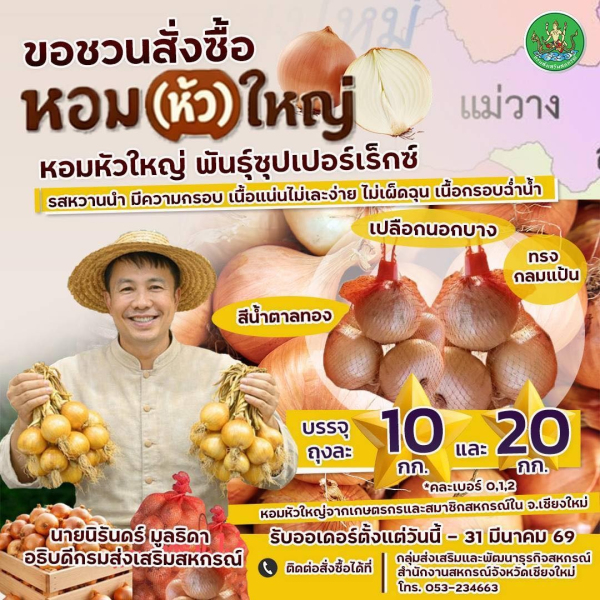 📣💚 กรมส่งเสริมสหกรณ์ ขอเชิญชวนทุกท่าน ร่วมสั่งซื้อ “หอมหัวใหญ่ พันธุ์ซุปเปอร์เร็กซ์” เพื่อเป็นการสนับสนุนและช่วยเหลือพี่น้องเกษตรกร