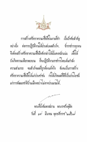 พระบรมราโชวาท เนื่องในวันข้าราชการพลเรือน ประจำปี พ.ศ. 2569ณ พระที่นั่งอัมพรสถาน พระราชวังดุสิต